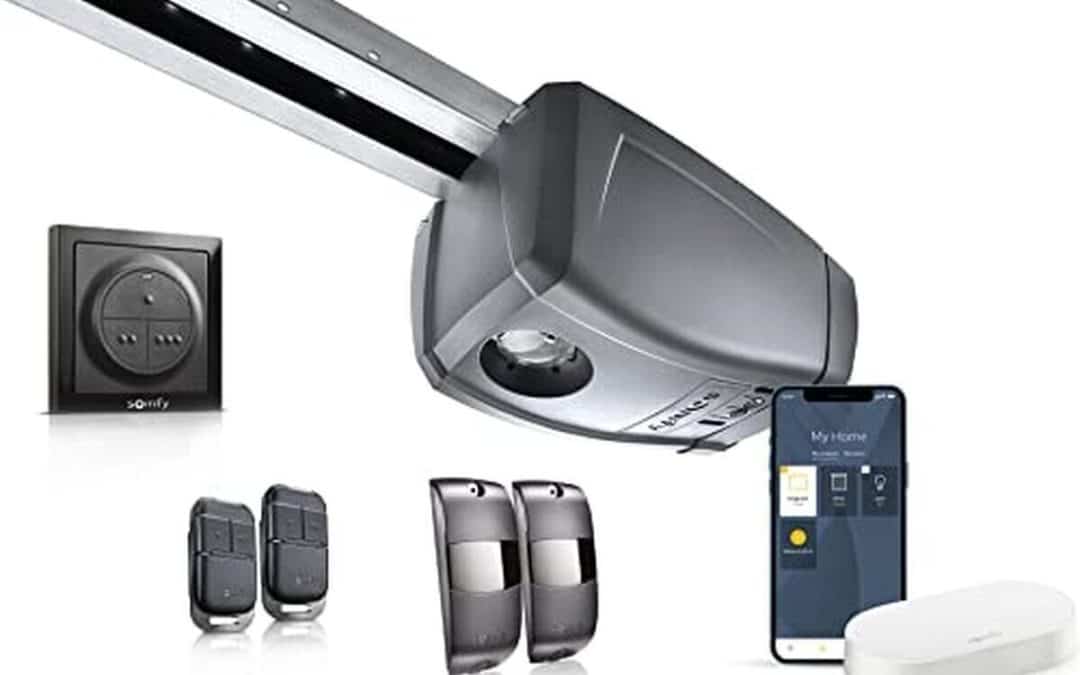 Somfy 1246362 – Pack de Motorisation pour porte de garage Serenia®1100 io Connect avec Kit de connectivité | Pour portes de garage Hauteur Max. 2.35 m et Largeur Max. 4.5 mCe kit contient 1 moteur Serenia 1100 io, 1 Kit de connectivité, 1 commande murale radio io, 2 télécommandes Keytis, 1 rail en acier galvanisé en 3 parties, 1 jeu de photocellules, 2 supports (pour linteau/porte), 2 barres d'attache et 1 bras de liaison Compatible avec une porte de garage basculante débordante ou sectionnelle, de dimensions maximales : 11 m2 Facile à installer et à utiliser grâce aux réglages du moteur pré-enregistrés en usine, aux télécommandes préprogrammées, à la notice détaillée et aux tutoriels vidéo. Moteur éco-conçu : consommation en mode veille réduite, facilement réparable grâce à la disponibilité des pièces détachées jusqu’à 5 ans après l’arrêt du produit. Installez le pack Sereniaio 1100 Connect et avec le Kit de connectivité inclus, contrôlez votre porte de garage avec votre smartphone en utilisant l’application TaHoma ou à la voix avec les assistants vocaux Amazon Alexa et l’Assistant Google Technologie radio io-homecontrol : avec l’utilisation de la technologie radio io, vous connaissez le statut de votre porte ouverte/fermée et pouvez modifier sa position à distance avec l’app TaHoma Dispose d’une ouverture silencieuse grâce à la courroie intégrée. Sécurité : grâce aux photocellules, le moteur intègre une détection d'obstacle à l'ouverture et à la fermeture de la porte. Lorsqu'un obstacle est détecté, le moteur immobilise la porte